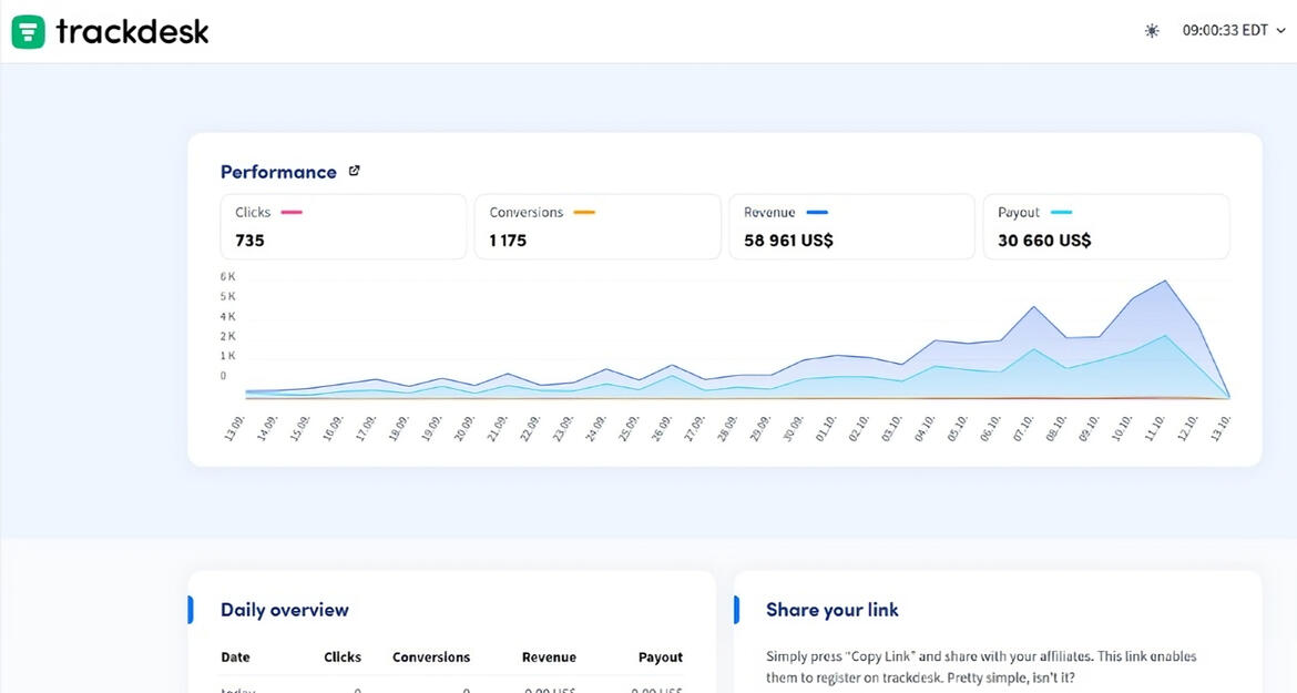 Riceverai un account TRACKDESK collegato al tuo link dove potrai vedere tutti i click e i tuoi guadagni.
